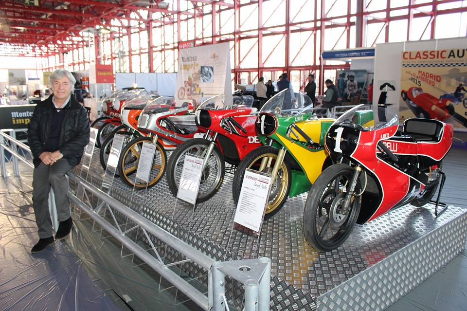 Entre tanta moto, no podia faltar un homenaje a una leyenda nacional como es Angel Nieto, celebrando el 50 aniversario de la primera victoria en el Campeonato de España de Motociclismo, que se celebro en Sevilla durante el 19 de septiembre de 1965. Se conto para ello con nueve de las motos con las que Angel Nieto compitio a lo lardo de su trayectoria deportiva.
