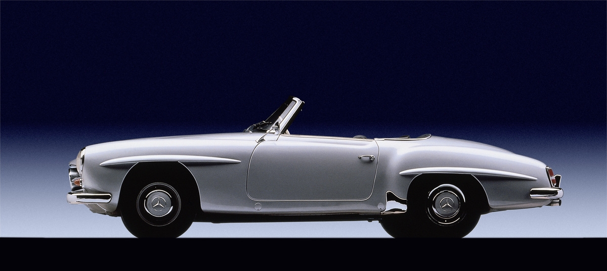 Presentado junto el 300 SL en el Salón de Ginebra, el Mercedes 190 SL comparte algunos elementos con ese mítico automóvil, aunque la plataforma era la del sedan W120, el Clase S de aquel tiempo. No era tan potente y rápido como el 'Alas de gaviota' ya que equipaba un cuatro cilindros de 1.897 centímetros cúbicos con 105 CV que llegó a recibir algunas críticas por lo complicado de la puesta a punto de sus carburadores Solex, pero no ha sido suficiente para ensombrecer al modelo, ya que muchos lo consideran como uno de los descapotables más sensuales y atrayentes de los años 50.
