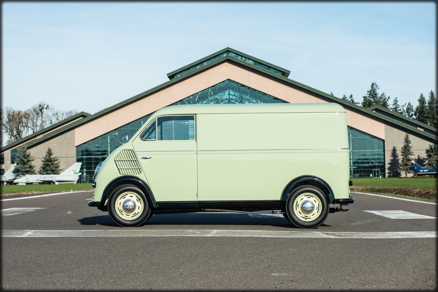 La DKW F98L fue un furgón tan típico como el SEAT 600 por las carreteras españolas. Se la considera pionera por su diseño con un solo trazo (monovolumen) y tuvo muchas versiones como un minibus con hasta ocho plazas. En España se fabricó desde 1954 y contaba con un motorcillo bicilíndrico de 700 centímetros cúbicos, cerca de 25 CV y un curioso sistema de refrigeración líquida mediante termosifón. No era rápida, pero suficiente para repartir los 750 kg de carga útil que admitía. Además, dudo mucho que los repartidores de aquella época tuvieran la presión y la cantidad de bultos que llevan ahora.
