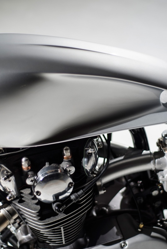 La moto que sirve de base es una Yamaha XS650 rescatada de una granja de Cornwall, Inglaterra, junto con otras tres unidades más. Decir, que la Yamaha XS650 se lanzó en 1968 y estuvo en la línea de montaje hasta 1979, pero ya tenía doble freno de disco delantero y un motor bicilíndrico de 650 centímetros cúbicos, de los que se extraían 50 CV y 54 Nm de par. Ahora es muy poco, pero entonces más que suficiente para un moto media.