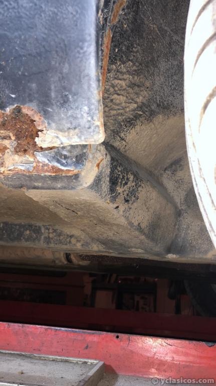 La parte baja de la aleta delantera derecha esta mal, pero el resto de los bajos estan bastante bien, para la edad de este vehículo .... y hasta aqui hemos llegado en el DIA1 de la restauración. .-
