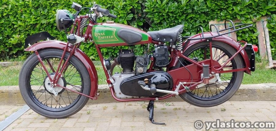 Aquí tenemos a la venta un modelo muy bonito de 350cc de Royal Enfield "C", año 1938, funciona muy bien. Mecánica excelente y fiable, restauración hermosa de un garaje profesional, de una colección privada. Todos los documentos originales de Holanda, puedo enviar más fotos