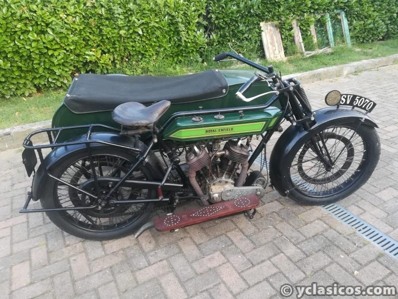 Aquí tenemos a la venta un precioso sidecar Royal Enfield 1000cc V-twin, año 1922, funciona muy bien. Mecánicos excelentes y confiables, hermosa restauración, de una colección privada. Todo original, puedo enviar más fotos y videos