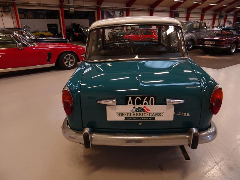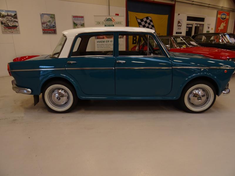 Maravilloso modelo Fiat 1100 D restaurado en estado excepcional y a solo 78899 kilómetros en el odómetro. El automóvil pasó las inspecciones técnicas danesas en septiembre de 2018 y no tendrá que pasar la inspección por otros 7 años. El automóvil conserva su motor original de 1.2 litros y su transmisión manual de 4 velocidades impulsando el automóvil a una velocidad máxima de 125 km / h. En la venta se incluyen recetas para reparaciones de servicio, así como manuales de servicio. Se completó la inspección interna y el servicio completo, y el automóvil está listo para disfrutarlo tal como está durante muchos años. El auto tiene papeles y títulos daneses.