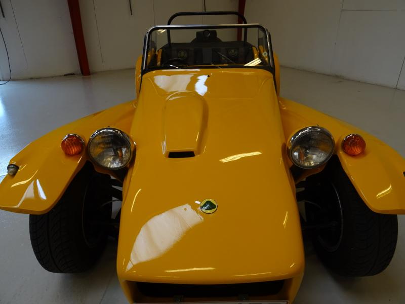 Lotus SEVEN S4 de 1972 de última producción en amarillo y con solo 8.809 kilómetros en el odómetro. El automóvil tiene un motor mejorado instalado bajo la comisión del propietario danés a largo plazo. El motor mejorado está certificado y documentado por las autoridades danesas y el automóvil tiene un título y registro daneses. Originalmente importado por el anterior propietario danés a largo plazo del Reino Unido en 2002. Muchas piezas de repuesto, incluidos el gato y el volante originales, se incluyen en la venta. El automóvil ha sido inspeccionado y revisado y está listo para ser disfrutado tal como está durante muchos años.