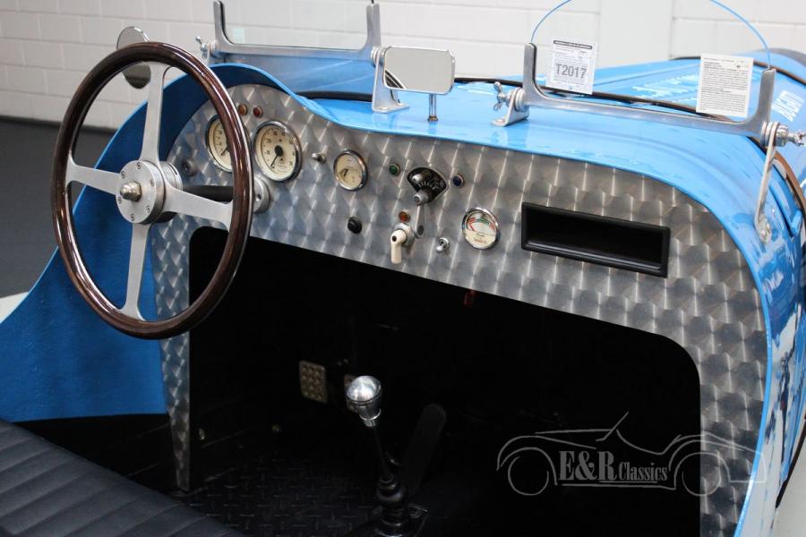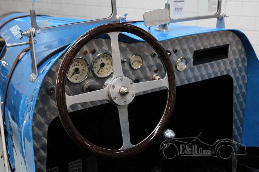This Volkswagen Ruska Bugatti was made by the well-known Dutch car manufacturer Ruska. Built with an eye for detail as a Bugatti type 35 replica with the iconic boat tail body. Painted in the recognizable and period correct light blue colour with accents and accessories from that period. This Ruska Bugatti is definitely one of the better replicas of the pre-war Bugatti. Definitely a unique appearance that is increasingly difficult to find.
