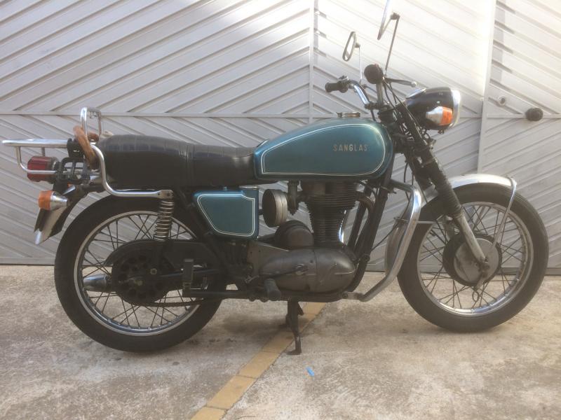 Sanglas 350/4 del año 1963 (antigua de la Guardia Civil). Restaurada. Funcionando perfectamente, ITV al día y Documentacion en regla, tiene nuevos neumáticos y cámaras. Siempre en garaje. Usada sólo en los veranos. Km REALES. Se encuentra en MOTRIL..