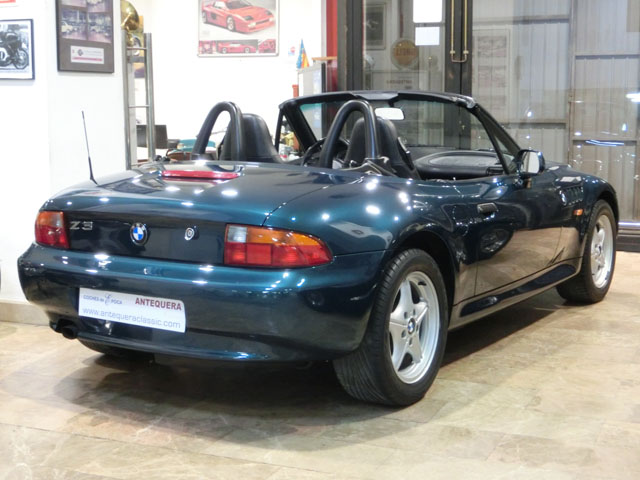 1895 CC., 140 CV, 4 CILINDROS, CAMBIO MANUAL 5 VELOCIDADES, BMW Z REIHE FASE 1 CH71, MOTOR M43B19 (19-4S-1), 16 VÁLVULAS, CARROCERÍA E36/7, AIRE ACONDICIONADO, DIRECCIÓN ASISTIDA, CIERRE CENTRALIZADO, ELEVALUNAS - ESPEJOS y ASIENTOS ELÉCTRICOS, CONTROL DE ESTABILIDAD ASC, DOBLE AIRBAG, INTERIOR EN MADERA, RADIO-CD-MP3 SONY CON MANDO A DISTANCIA Y CARGADOR 10 CDs, RECIÉN PINTADO, FRENOS ABS, PINTURA METALIZADA EFECTO PERLA, BMW BOSTONGRÜN METALLIC 275/6, CAPOTA DE LONA BEIGE ELÉCTRICA, Y TECHO RÍGIDO HARDTOP (ROADSTER - COUPÉ), INCLUYE CARRITO PORTA HARDTOP, BIPLAZA, LLANTAS DE ALEACIÓN BMW, VOLANTE DE CUERO M, PARABRISAS CON FRANJA TINTADA, 102.000 KMS. ORIGINALES, GRAN ESTADO DE CONSERVACIÓN, PERFECTO ESTADO Y FUNCIONAMIENTO, ESTRENADO EN ESPAÑA, DOCUMENTACIÓN e ITV AL DÍA. MÁS INFORMACIÓN EN: https://antequeraclassic.com/catalogo/bmw-z3-roadster