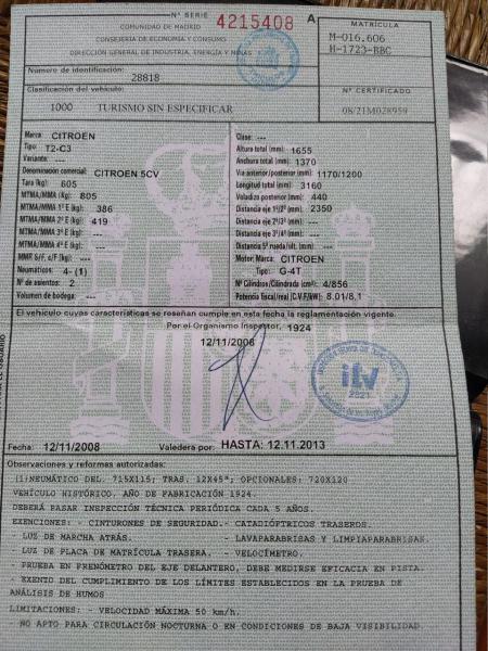 Unidad perteneciente a la primera serie del modelo, originalmente vendida en España. Aún porta su matrícula original de los años 20 de la ciudad de Madrid. También está matriculado como Vehículo Histórico en España.