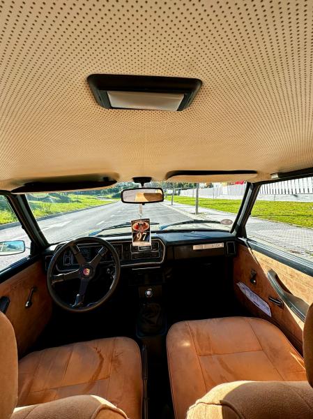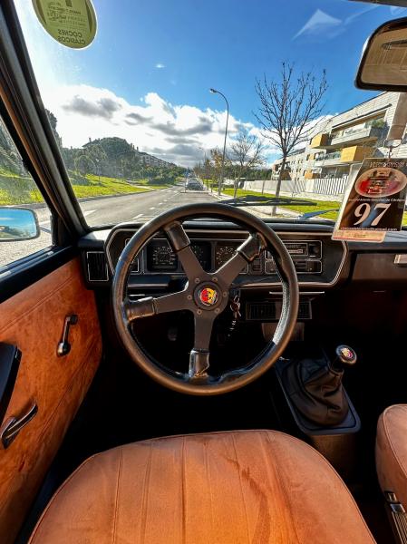 En el exterior la pintura está en muy buenas condiciones, obviamente tiene alguna marca (tiene 48 años), y el interior está para verlo con el techo original y unos asientes de velour que se tapizaron hace unos años, puertas incluidas. Lo único no original es el volante que es tipo competición de la época en cuero. Ah, y una pegatina de Abarth (no soy perfecto). Las llantas son las de un 124, siempre me ha gustado como contrastaba con la pintura, las originales las tengo, pero no están incluidas.