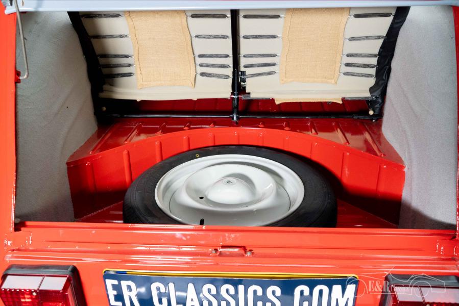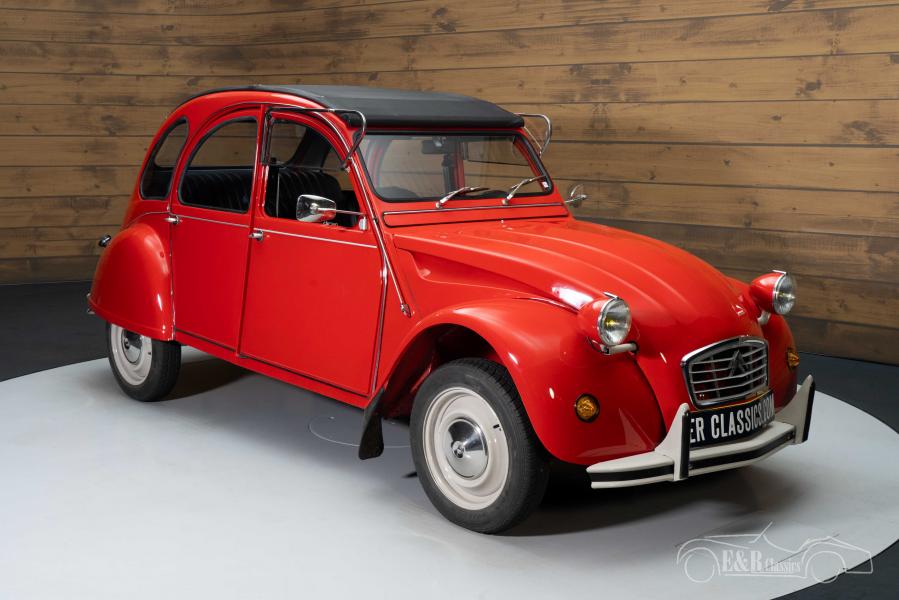 The Citroën that we offer for sale here looks like a real 2CV should look. It is finished in a beautiful red paintwork that makes this classic a real eye-catcher. The interior is equipped with black imitation leather upholstery and a black roll-top roof has been chosen that you can easily open as soon as the sun shines.