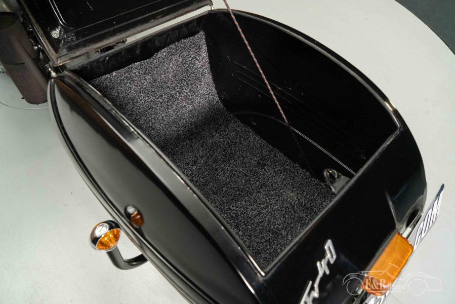 El Messerschmitt KR 200 que ofrecemos a la venta aquí es realmente un espectáculo digno de contemplar. Durante la restauración se pintó de negro y se equipó con un interior de cuero artificial blanco. Como si el aspecto del Messerschmitt KR 200 no fuera lo suficientemente especial, este clásico viene con un remolque PAV40 de 1967 a juego con el mismo estilo que el Messerschmitt.