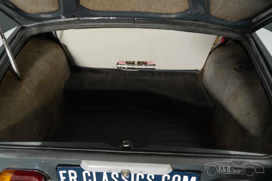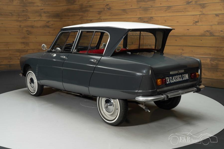 El exterior de este Citroën Ami 6 rezuma elegancia francesa. La luneta trasera invertida es un detalle de diseño distintivo que no solo es elegante, sino que también ofrece espacio adicional para el equipaje. La carrocería está acabada en una pintura gris de la época con un techo blanco en contraste, lo que le da a este vehículo un aspecto atemporal. Los elegantes neumáticos de banda blanca realzan el auténtico aspecto retro. En el interior, el interior le da la bienvenida con una tapicería de tela roja, que combina perfectamente con el encanto del vehículo. El salpicadero minimalista y los amplios asientos garantizan un interior funcional y cómodo.