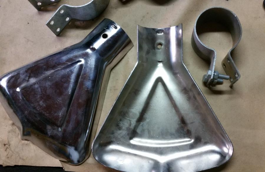 Se vende embellecedores para la cola de escape para coches, furgonetas, autocares, camiones clasicos. Pegaso, Barreiros, Avia, Ebro, Sava, Mann, Internacional...se vende con abrazadera. Diametro min aprox 80mm. Son nuevos a estrenar en perfecto estado