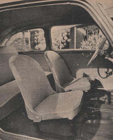 Aun cuando podemos preguntar por qué la mayor parte de los constructores de coches utilitarios tienden a una excesiva reducción de las dimensiones externas, hemos de reconocer que en el «600» se ha conseguido obtener, no obstante estas limitadas dimensiones, un satisfactorio espacio interior para cuatro personas de estatura normal. No se encuentran demasiado cómodos, por el contrario, los pasajeros de estatura superior a la media; es decir, los de altura superior a 1,70 m. En el asiento delantero no se pueden extender las piernas, y detrás, además de esto, los pasajeros están obligados a permanecer un poco encorvados para no tropezar con la cabeza en el techo del coche. Satisfactoria la accesibilidad a los dos asientos anteriores. Incómodo, por el contrario, el paso a los posteriores a causa de tener una sola puerta y de que los asientos delanteros (distintos a los montados en Italia) están fijados al piso del coche, reclinándose únicamente el respaldo.