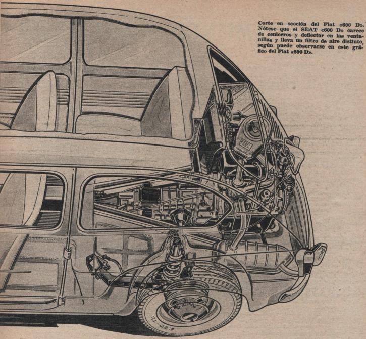 En lo referente al equipaje, si el «600» transporta 4 personas, el espacio es insuficiente. Tanto el baúl anterior como el espacio que hay detrás del asiento posterior, tiene una forma que difícilmente puede aprovecharse bien. En caso de viajar dos personas solamente se puede rebatir el respaldo del asiento posterior, obteniendo así abundante espacio para el equipaje. Pero en este caso, colocarlo y sacarlo es bastante difícil, y además, en caso de frenazo brusco, el equipaje puede ser proyectado hacia los asientos anteriores con cierto peligro para los pasajeros. |