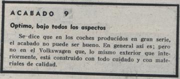 Fíjense bien: no del «mejor proyectado», ni tampoco del «más robusto», sino del «mejor construido». Y he aquí el verdadero porqué del fenómeno Volkswagen, debido a la organización más que a la genialidad técnica. Debido más al cuidado en la producción, que a lo excepcional de las prestaciones, sin caer Jamás en la prodigiosa ambición de ofrecer al cliente «una vasta gama de modelos».