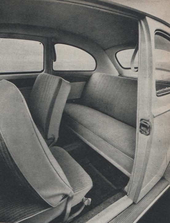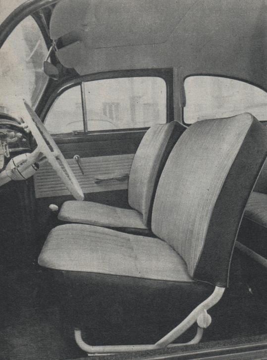 Hemos hablado ya del satisfactorio espacio interior para 4 personas, gracias a la capacidad disponible. Más que bueno el confort de marcha, en virtud de la buena suspensión y de la comodidad de los asientos. Menos alagador es dicho confort en lo referente a las molestias producidas por el ruido del motor, debido a estar éste refrigerado por aire, y prácticamente instalado bajo el asiento trasero. Este ruido aumenta con el régimen de funcionamiento del motor, siendo superior al que producen los refrigerados por agua.