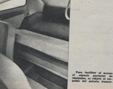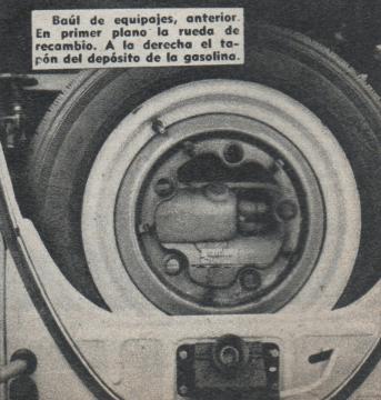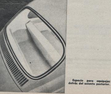 Este coche tiene dos espacios para equipajes: uno en el baúl anterior, y otro destrás del respaldo del asiento posterior. Entre ambos ofrecen un volumen aceptable (116 dmc. el anterior, y 98 dmc. el interior), pero no pueden aprovecharse bien: el primero porque es poco profundo, y el otro porque, tehiendo sólo una puerta por lado, resulta difícil emplazar y sacar las maletas, aún rebatiendo el respaldo.