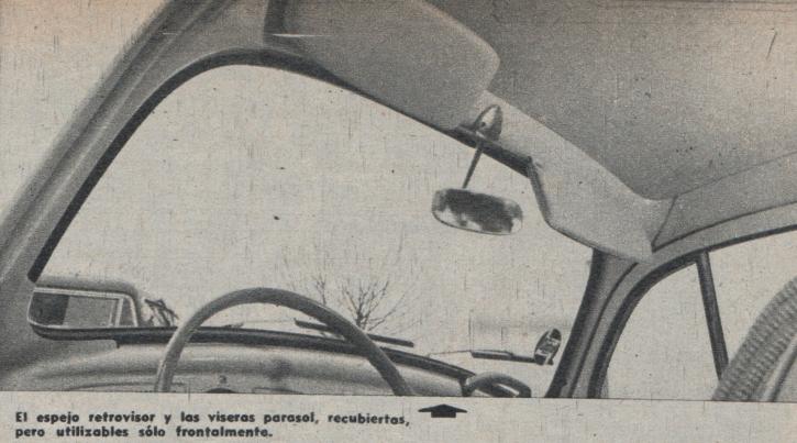 Sobre el parabrisas hay las dos viseras parasol, recubiertas, pero tienen el defecto de que sólo pueden utilizarse frontalmente. Se nota igualmente la falta del .dispositivo, en el espejo retrovisor interior, que impide el deslumbramiento.