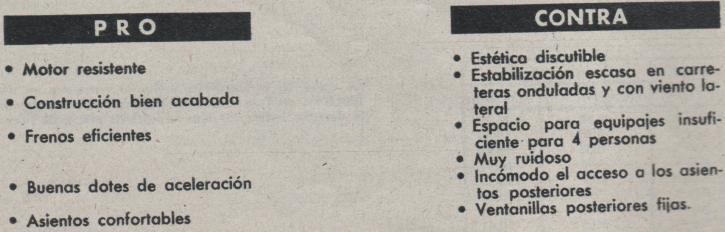 o bien para «4 personas y 100 Kg. de equipaje». Nosotros preferimos —teniendo en cuenta las medidas interiores— la segunda fórmula; en la primera, el tercer pasajero no va nada cómodo.