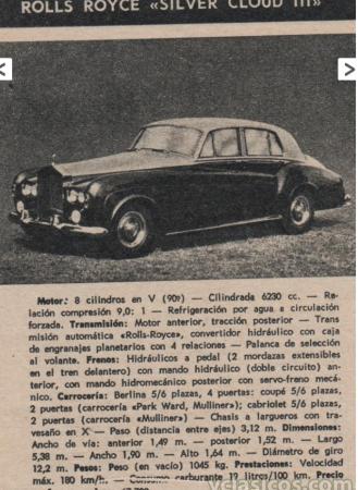 ROLLS ROYCE SILVER CLOUD III - Ficha Técnica de época