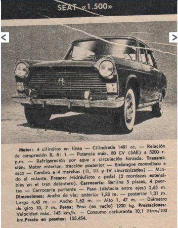 Motor: 4 cilindros en línea. Cilindrada 1481 cc. Relación de compresión 8, 8: 1. Potencia máx. 80 CV (SAE) a 5200 r.p.m. Refrigeración por agua a circulación forzada.