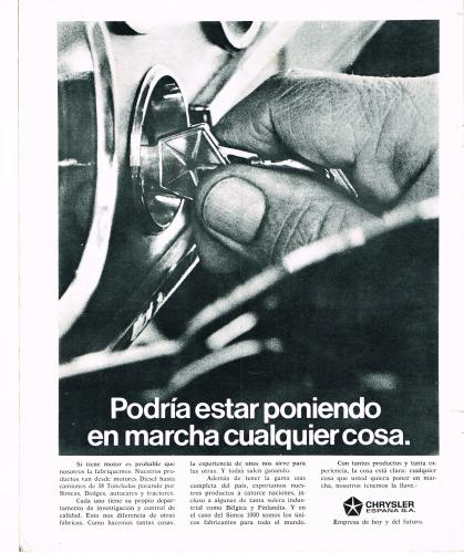 "Podía estar poniendo en marcha cualquier cosa " esta era una publicidad de Chrysler en las revistas españolas de la época.