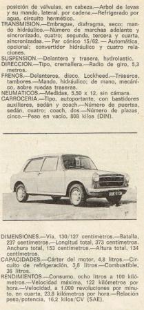 RENDIMIENTOS: Consumo, ocho litros a 100 kilómetros. Velocidad máxima. 122 kilómetros por hora. Velocidad, a 1.000 revoluciones por minuto. en cuarta, 23.8 kilómetros por hora. Relación peso/potencia, 16.2 kilos./CV (SAE).