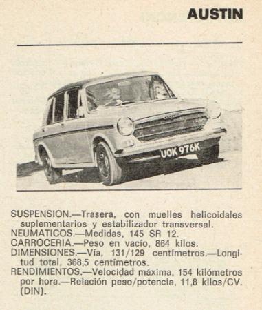AUSTIN 1300 GT - Ficha Técnica de época 1972