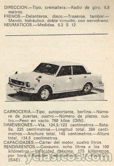 RENDIMIENTOS: Consumo, ocho litros a los 100 kilómetros. Velocidad máxima. 175 kilómetros por hora. Relación peso-potencia. 7.9 kilos/CV. (SAE).