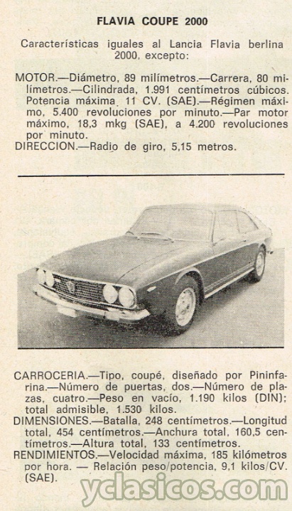 LANCIA FLAVIA 2000 COUPE - Ficha Técnica de época 1972