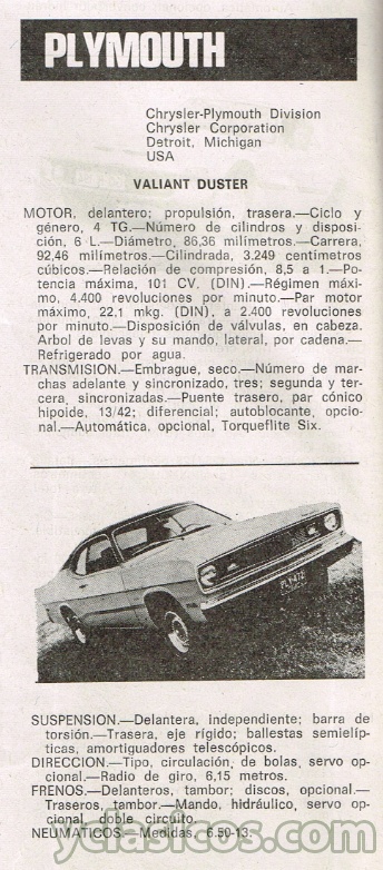 Estos son los PLYMOUTH VALIANT DUSTER que actualmente hay disponibles en venta en este portal (www.yclasicos.com):