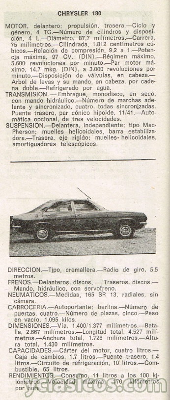 RENDIMIENTOS: Consumo. 11 litros a los 100 kilómetros. Velocidad máxima, 170 kilómetros por hora.
