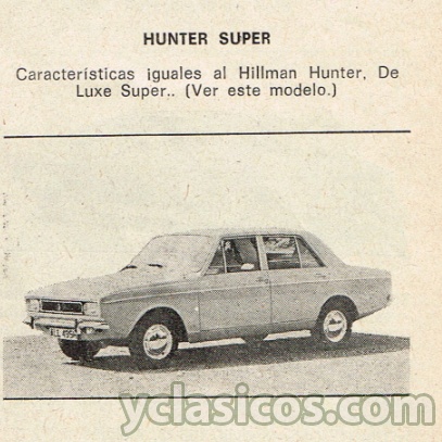SUNBEAM HUNTER SUPER - Ficha Técnica de época 1972