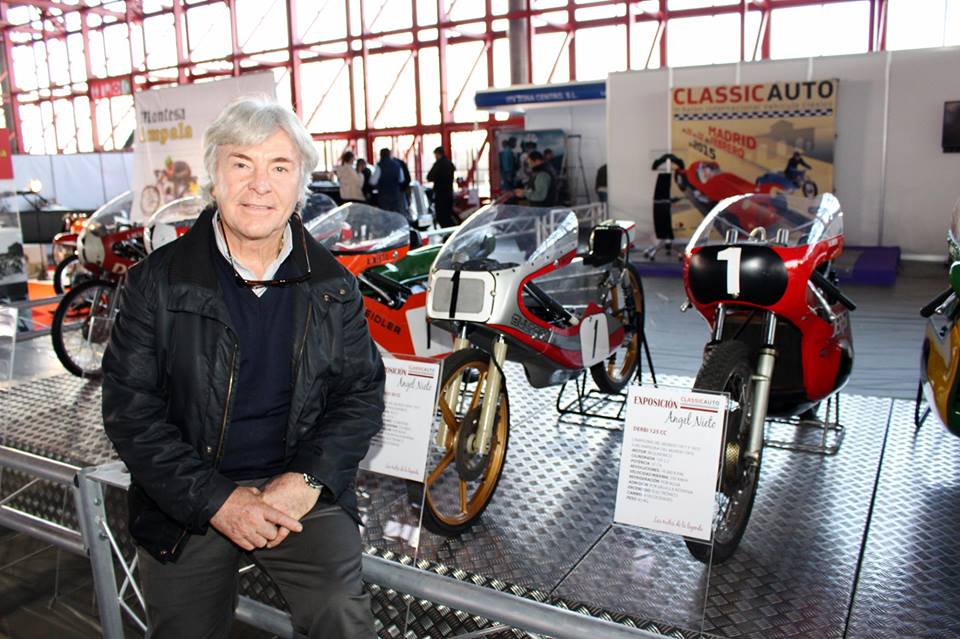 Entre tanta moto, no podia faltar un homenaje a una leyenda nacional como es Angel Nieto, celebrando el 50 aniversario de la primera victoria en el Campeonato de España de Motociclismo, que se celebro en Sevilla durante el 19 de septiembre de 1965. Se conto para ello con nueve de las motos con las que Angel Nieto compitio a lo lardo de su trayectoria deportiva.