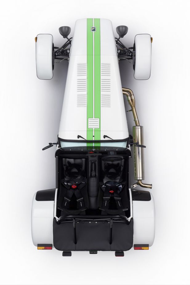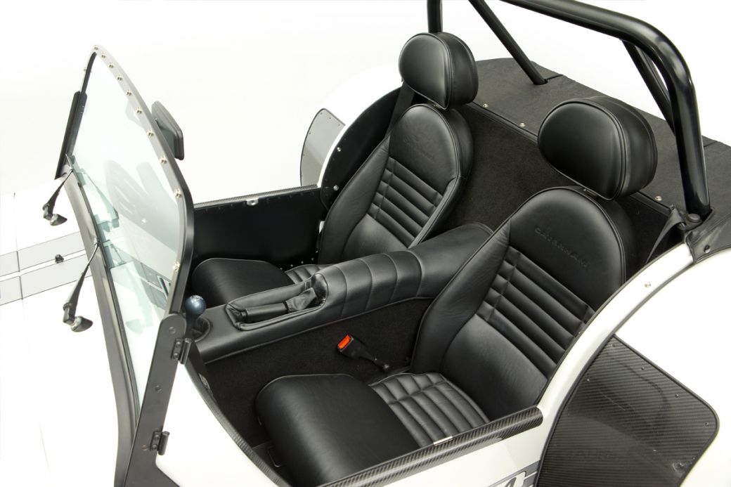 Llevando al extremo la filosofía de un menor meso es mejor que un motor potente, se ofrece en opción carrocería de fibra de carbono, que rebaja todavía más el escaso peso que lucen las versión del Caterham Seven, aunque también se tiene en opción el chasis SV que aumenta el espacio del habitáculo y del maletero, a costa de subir la tara en 25 kilos.