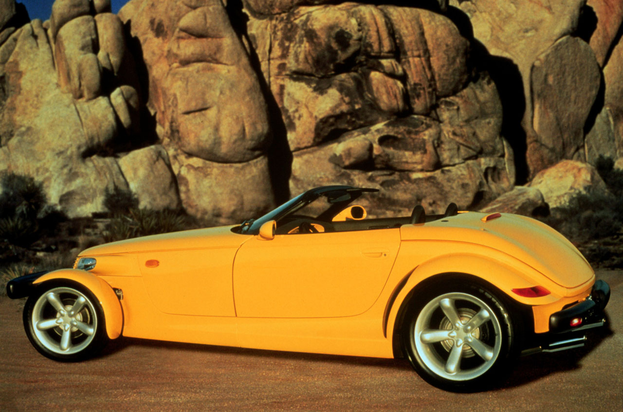 Su vida comenzó en 1993 en forma de concepto, pasando a producción en 1997 como un modelo Plymouth, pero tras la alianza de Chrysler con Daimler-Benz, la marca paró su actividad en el año 2001 y el Prowler pasó a formar parte de la linea de producción de Chrysler hasta 2002. A muchos seguro que el frontal del Prowler les recuerda al frontal del Chrysler PT Cruiser y tiene su porque; el PT Cruiser iba a lanzarse al mercado como Plymouth y su línea estética estaba influida por el Prowler, queriendo ofrecer algo diferente y con clara alusión a los hot rod de los años 50.
