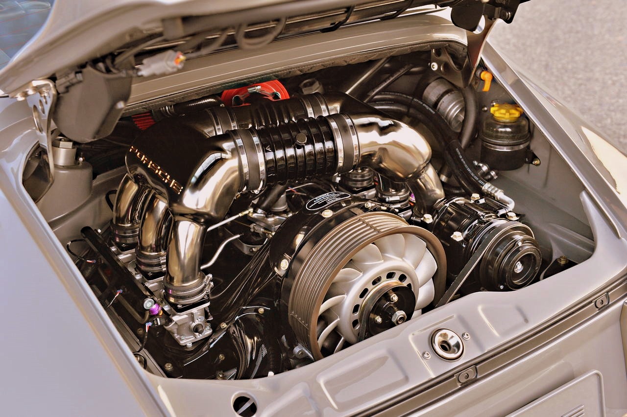 Atrás, bajo el característico capó de todos los Posche 911, dos posibilidades: un seis cilindros boxer de 3.6 litros refrigerado por aire de 270 CV o bien un 3.8 litros de 360 CV. El primero es un motor Porsche relativamente moderno totalmente restaurado y retocado por Singer Vehicle Design y el segundo, también motor Porsche, es una obra de ingeniería retocada y modificada por Cosworth y que en ciertas zonas solo es legal usarlo en circuito.
