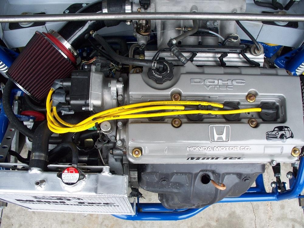 ¿Cómo harías tú para 'meterle' a un MINI 395 CV y un sistema de tracción total? Porque es justamente eso lo que destaca en este especialísimo MINI, su potencia y que le han incorporado una transmisión a las cuatro ruedas, única manera de poder poner sobre el asfalto tanto caballo. Superfastmini ha recurrido a una mecánica japonesa junto con una tracción 4x4 de la misma marca. Así, encontramos un motor Honda 'B20', un cuatro cilindros de dos litros de cilindrada, junto con la tracción total del Honda CR-V, todo adaptado a sus nuevos menesteres y a su nueva ubicación evidentemente. No hablan de la preparación del motor, pero visto lo que declaran, debe llevar de todo.