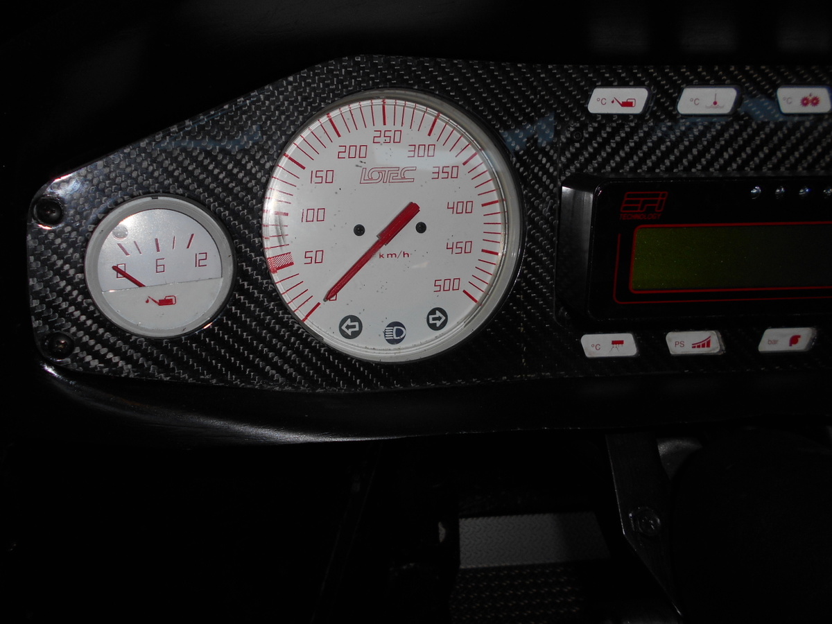 Pero no solo modificó la carrocería, sino todo el coche por completo. El habitáculo está totalmente cambiado frente al Ferrari Testarossa, con asientos más inclinados, fibra de carbono y un optimista velocímetro tarado hasta los 500 km/h.
