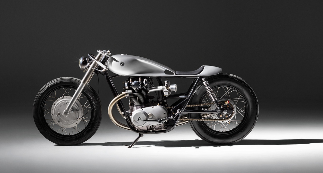 La moto que sirve de base es una Yamaha XS650 rescatada de una granja de Cornwall, Inglaterra, junto con otras tres unidades más. Decir, que la Yamaha XS650 se lanzó en 1968 y estuvo en la línea de montaje hasta 1979, pero ya tenía doble freno de disco delantero y un motor bicilíndrico de 650 centímetros cúbicos, de los que se extraían 50 CV y 54 Nm de par. Ahora es muy poco, pero entonces más que suficiente para un moto media.