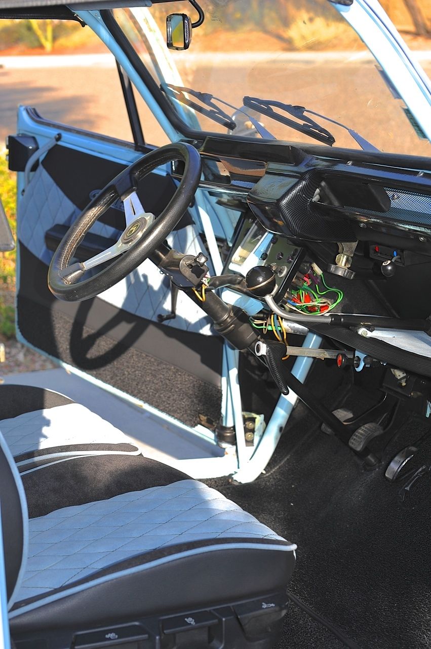La unidad en cuestión ha sido restaurada en Francia antes de cruzar el charco y ha recibido algunas cosas que le hacen perder originalidad, como los nuevos asientos más modernos tapizados en negro y azul a juego con los paneles de las puertas o el volante. El color azul pálido no se sabe si es el original pero el motor está intacto, con sus cilindros boxer refrigerados por aire emitiendo su peculiar sonido.