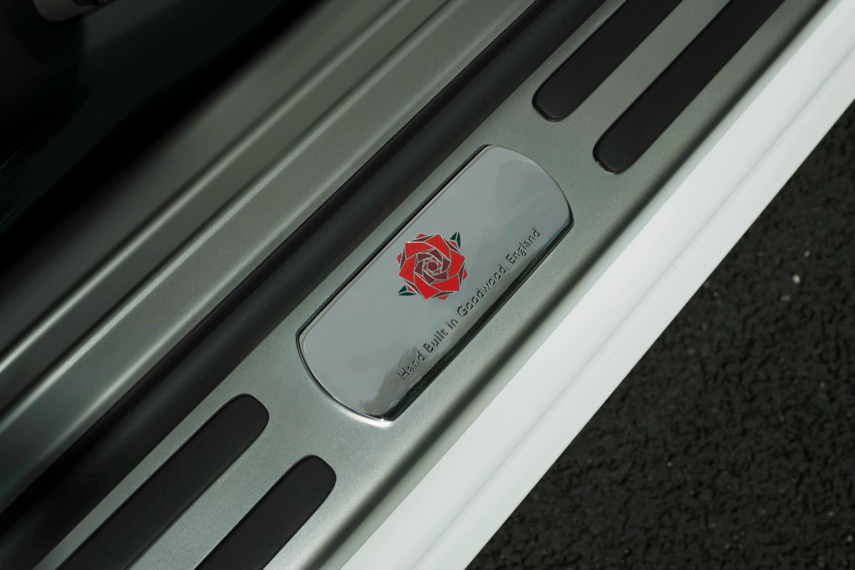 La casi totalidad del habitáculo luce de un color blanco impoluto, acompañada por molduras en 'Piano Black' y tapizados varios en 'Blue Navy'. Aquí también aparece una rosa, aunque en esta ocasión es de color plateado y está grabada en la tapa que tiene la pantalla del salpicadero.