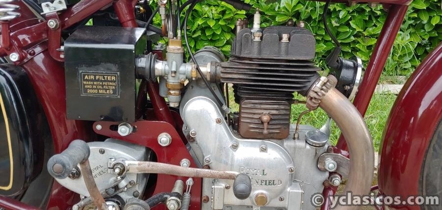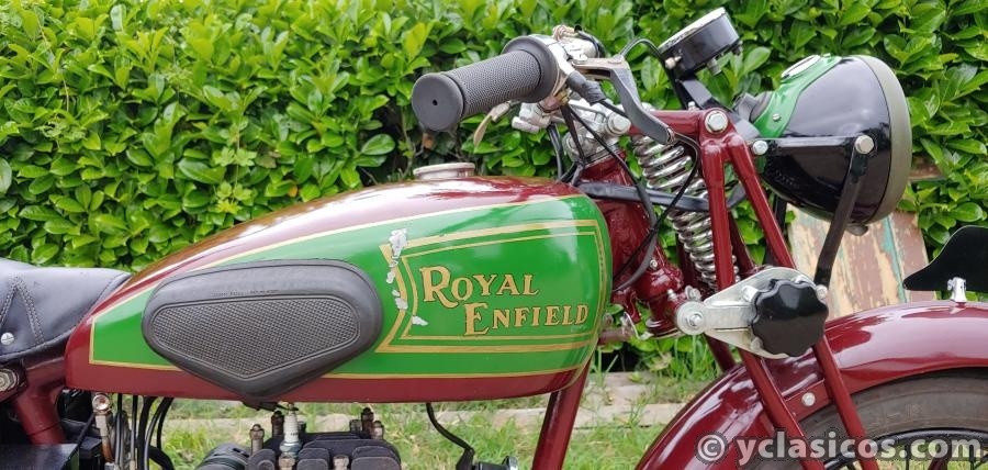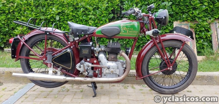 Aquí tenemos a la venta un modelo muy bonito de 350cc de Royal Enfield "C", año 1938, funciona muy bien. Mecánica excelente y fiable, restauración hermosa de un garaje profesional, de una colección privada. Todos los documentos originales de Holanda, puedo enviar más fotos