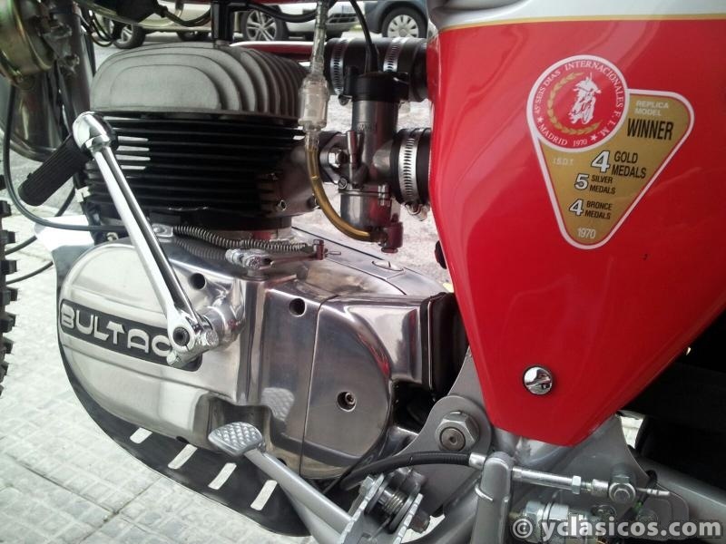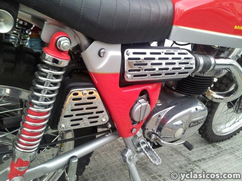 Restauración impecable. Tornillería original Bultaco. Amortiguadores reparados también en su interior por Brinco. Mecánica nueva (pistón, biela, rodamientos, juntas, retenes...) Funcionamiento perfecto. Cubrecárter original. Velocímetro original nuevo con parcial. Llave de luces original Femsa. Carburador nuevo. Tornillos del faro originales Hensev. Mando de luces original Leonelli. Encendido electrónico original nuevo Femsatronic.