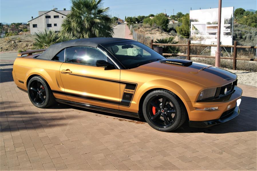Precio negociable .Exclusivo Mustang RS3 570 CV, único RS3 cabrio en España, y no hay otro deportivo en venta con estos CV en este precio. En color especial Metallic Yellow Gold que varia el tono según la incidencia de la luz. Precioso interior en cuero rojo. Absolutamente nuevo, como estrenar, muy mimado y exquisitamente mantenido, siempre en garaje privado, y muy pocos km. solo 75.000. Cámara de grabación de trafico continua, sistema multimedia con pantalla táctil y con cámara vision trasera de aparcamiento, navegador GPS, bluetooth, teléfono manos libres, equipo de sonido de gran calidad, conexión para pendrive por usb y tambien para android y iphone. Control de velocidad de crucero-piloto automático , volante ajustable y deportivo multifunción en cuero negro, climatizador, asientos eléctricos, capota eléctrica, espejos y elevalunas eléctricos. Cuadro FOOSE con distintos tipos y colores de iluminacion (de serie), retrovisores deportivos en negro brilllo agente 47, mando a distancia con alarma y apertura eléctrica del maletero, luces led diurnas, faros de xenón, antinieblas, faros de largo alcance, bonita y original iluminación nocturna. Automatico con posibilidad de cambio manual y overdrive electrónico. Suspensiones regulables desde el interior, rejillas de aireación interior exclusivas, control de tracción desconectable, frenos potenciados con pinzas en color rojo, llantas de aleación exclusivas de 19” en color negro, barra de torretas, chasis reforzado, escape deportivo y rejillas delanteras Roush. Paravientos especifico de montaje/desmontaje rápido con su funda original para el maletero para poder utilizar cómodamente los asientos traseros cuando se necesiten. Aceleracion brutal, velocidad de vértigo. Motor V8 Supercharged con casi 600 CV una autentica bestia solo para iniciados y conocedores, un exclusivo y autentico Muscle Car Americano, toda la transformación hecha por Roush Stage 3. Fecha matriculacion 2019, modelo 2007, posiblemente la versión más bonita y autentica del Mustang junto con la de los años 60. Coche impecable, muy exclusivo, para quien busque estilo y perfeccion, cuidado hasta el último y mas mínimo detalle. Libro con historial de mantenimiento, manual del propietario, manual de taller. No hay que hacerle nada absolutamente, revisión hecha, con ITV y documentación al dia listo para transferir y disfrutarlo con total garantía y fiabilidad. Acepto cambio por coche deportivo, berlina, coupe, GT, clasico o moderno de mi interes. Admito diferencias a favor o en contra. Tambien acepto coche como parte de pago.