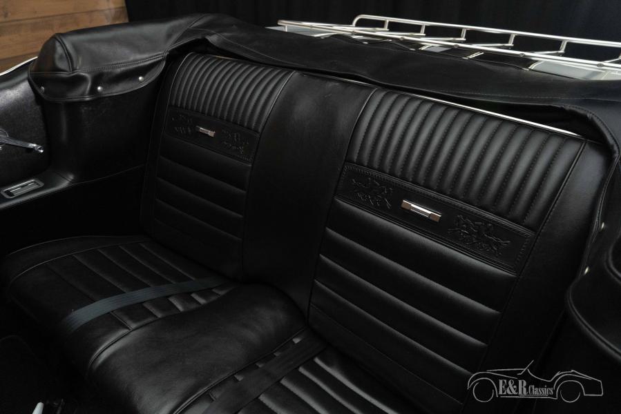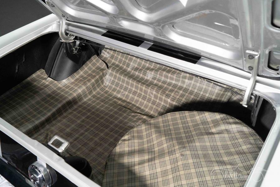 Tan pronto como mire las fotos de este clásico, verá de inmediato que se trata de cualquier cosa menos un Ford Mustang estándar. Este Mustang se caracteriza por su robusto GT-Look con faros adicionales, silenciadores en el parachoques trasero y varias insignias GT. Está acabado en una hermosa pintura gris plateada y está equipado con Shelby Striping que le da un aspecto deportivo. El interior está en muy buen estado y está equipado con un salpicadero y un volante con incrustaciones de madera, una lujosa consola central y tapicería Pony negra. En resumen, un Ford Mustang Cabriolet muy completo y completamente listo para su nuevo propietario.