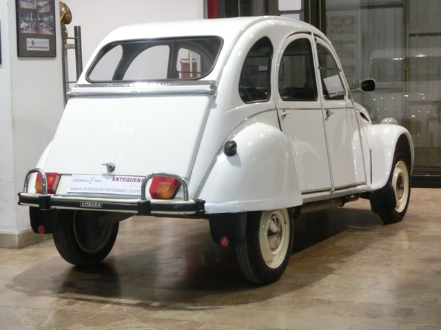 602 CC., 25 CV, MOTOR BOXER 2 CILINDROS, 4 VELOCIDADES, VERSIÓN 2 CV AZAM6, COLOR BLANCO AC 097 BLANC STELLAIRE, MOTOR M4 AM2A, REFRIGERADO POR AIRE, 12 VOLTIOS, ALTERNADOR, FABRICADO POR CITROËN HISPANIA VIGO, TECHO RÍGIDO - HARDTOP, 4 PLAZAS, RESTAURACIÓN ANTIGUA, BUEN ESTADO CON DETALLES A MEJORAR, CORRECTO FUNCIONAMIENTO, MATRÍCULA ORIGINAL (AB), DOCUMENTACIÓN e ITV AL DÍA. MÁS INFORMACIÓN EN: https://antequeraclassic.com/catalogo/citroen-2cv-azam6-1968