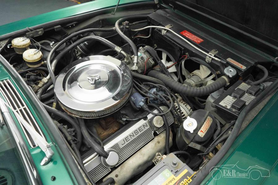 En cuanto a su apariencia, este Jensen Interceptor es un auténtico icono de estilo. La pintura verde metalizada crea un hermoso contraste con la capota beige y el lujoso interior marrón. Tanto la capota como las ventanillas son eléctricas, un lujo poco común en aquella época. El salpicadero está equipado con una amplia gama de indicadores e interruptores clásicos, mientras que los cómodos asientos ofrecen una experiencia de conducción con estilo. Las llantas originales Jensen con detalles en verde completan el look y realzan la elegancia deportiva de esta obra maestra británica.